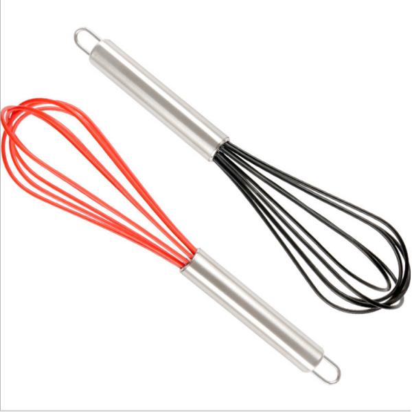 Practical Kitchen Tools 10 " Food Silicone Egg Beater Stainless Steel Handle Hand Mixer Images