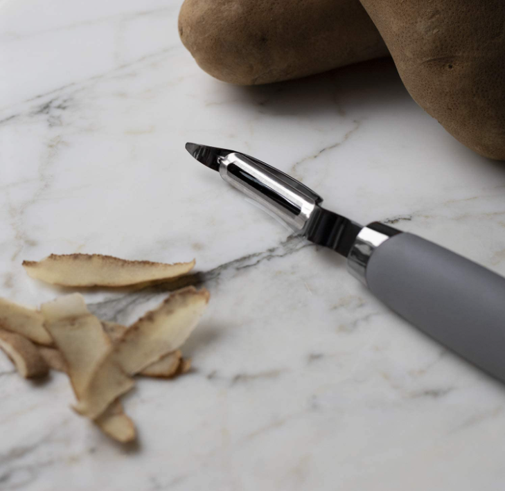 2)Set includes 1 can opener (8.5” long), 1 ice cream scooper (8.5” long), 1 peeler (8.5” long), 1 pizza cutter (8.5” long), 1 cheese grater (10” long) and 1 whisk (12” long). Hand wash serving appliances with warm soapy water